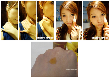 雖然說是精華液,但因為是可以按摩用的,所以推開的感覺還是有滑溜感!!!而且一推開就發熱了耶!在輕輕的推開,重點是,這款是強調發熱,但絕不是發燙喔!!