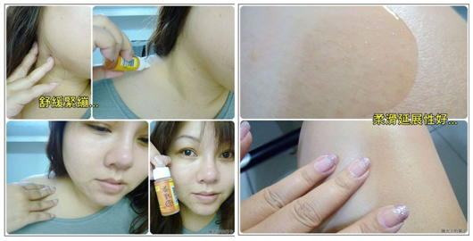 測試過後沒問題,葉子就放心的來享受熱熱的呼呼囉,即使沒人幫忙..也可以自己塗到肩頸處,然後均勻的塗開,過一會果然期待的溫熱感出現了,好舒服唷,不是那種嚇人的熱辣! 而是舒服的熱感呢,溫溫熱熱持續的時間還挺久的.肩膀感覺放鬆了不少,好讚耶~~